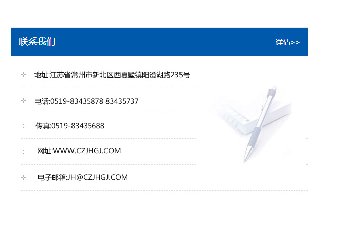 地址:常州市新北區友邦商務大廈1幢16、17層  電話:0519-85101652  傳真:0519-85112595  郵編:213022  網址:www.cz-jiayue_cn.shuoxufw.com  郵箱:xiajifengaa@163.com